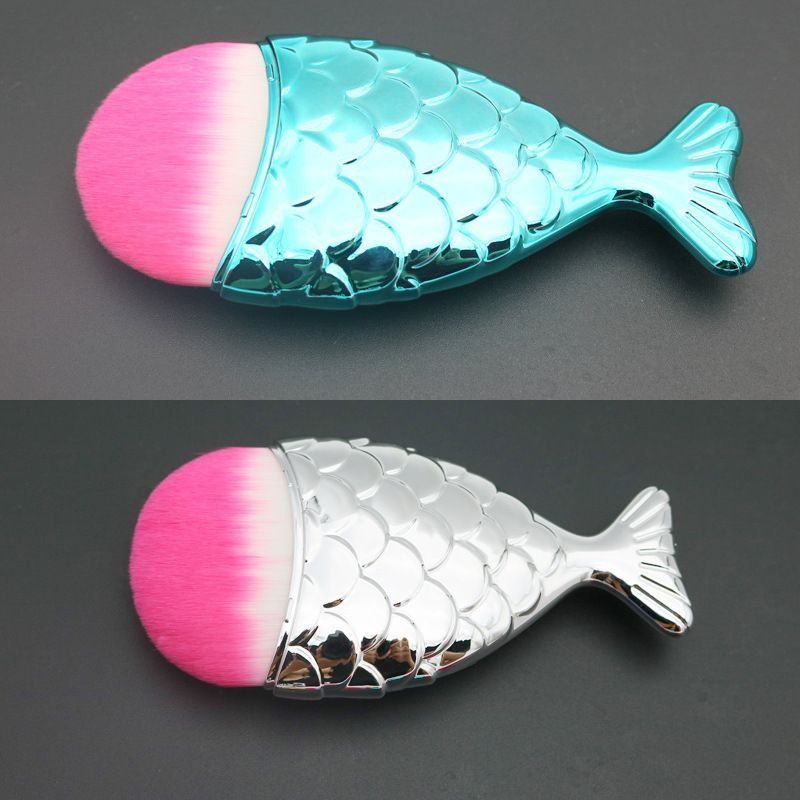 送料無料メイクブラシ メイクアップ マーメイドブラシ 魚モチーフ 化粧ブラシ コスメブラシ ファンデーションブラシ チークブラシ フェイスブラシ パウダーブラシ 携帯用 かわいい おしゃれ プレゼント 贈り物 キラキラ ラメ加工 カラフル
