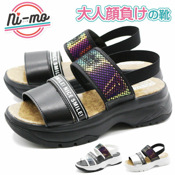 【送料無料】ムーンスター ニーモ キッズ 厚底サンダル ブラック シルバー ni-mo NM J011 スポーツサンダル スポサン おしゃれ かわいい 軽い 美脚 ガールズ 女の子 子供靴 (2004)