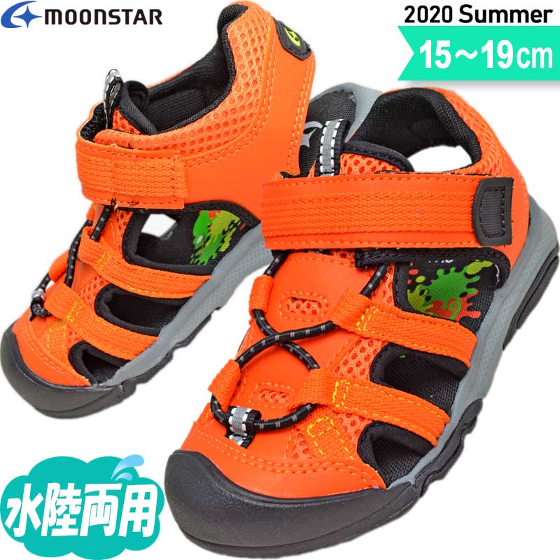 ムーンスター キャロット 男の子 女の子 キッズ サンダル ベビー プール 水遊び 海 キャンプ アウトドア 水陸両用 つま先あり つま先カバー 子供靴 MFL S002C オレンジ 15〜19