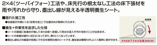 幅1000mm×長さ30m×厚さ0.13mmこの商品は フクビ【イージーコートDX30 ECDX30 1本入】 ポイント 2×4工法やネダレス工法などの床下地材を雨や汚れから守り、墨出し線が見える半透明床養生シート。